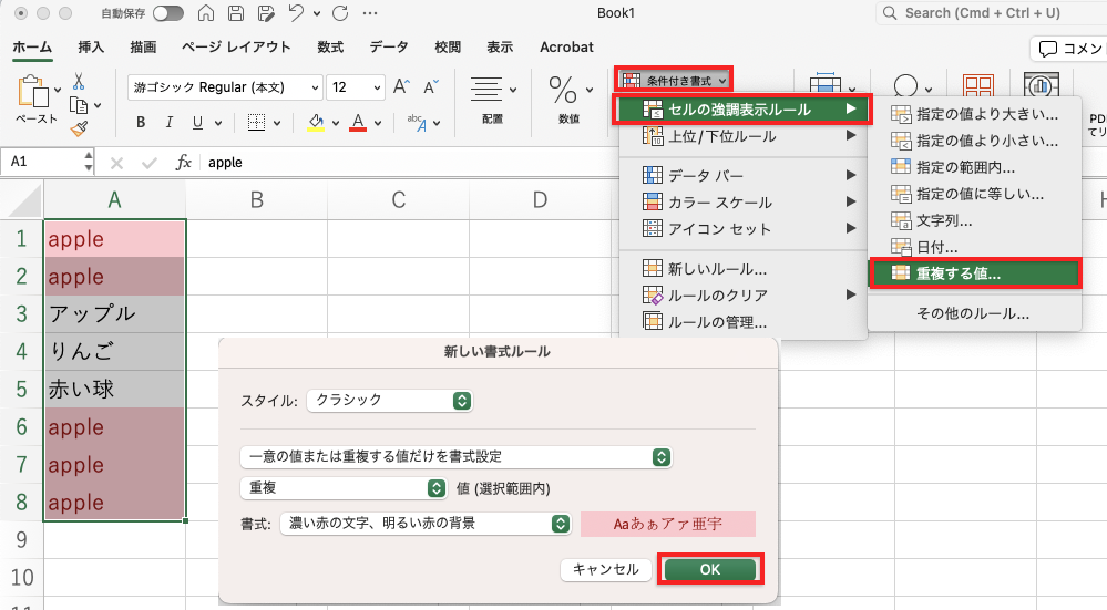 条件付き書式を使った重複データのハイライト